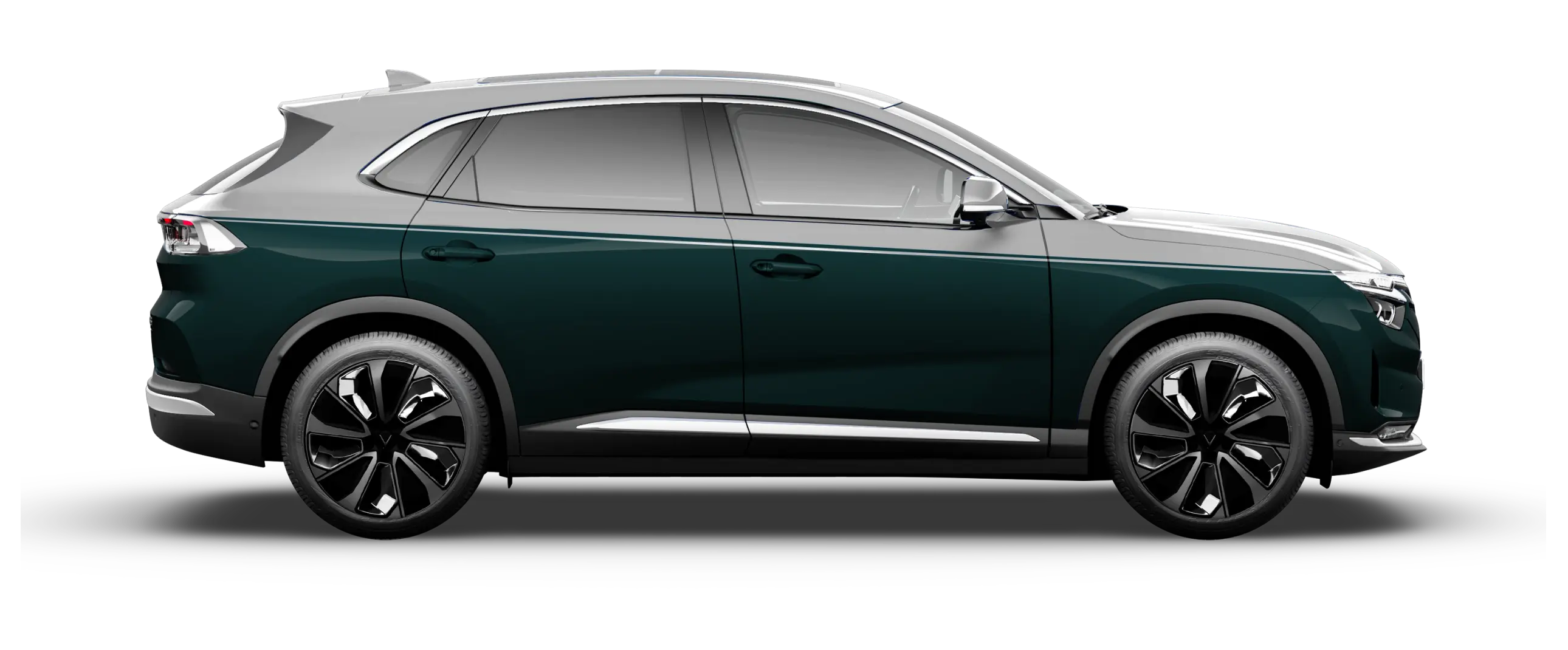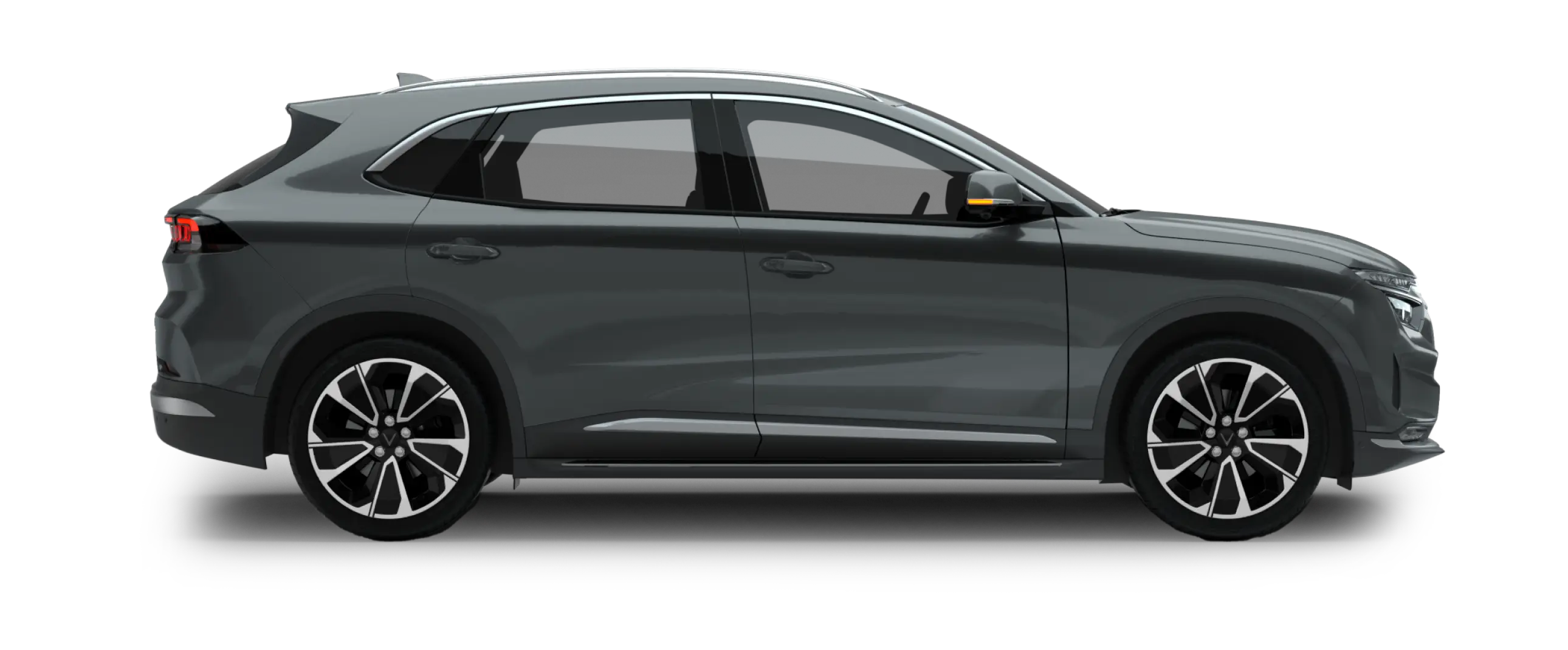 • Thiết kế: VF8 nổi bật với dải đèn LED hình cánh chim ở đầu xe và đuôi xe – đặc trưng của VinFast. Mui xe vuốt coupe thể thao, kết hợp cùng la-zăng hợp kim 19 inch (Eco) hoặc 20 inch (Plus).
